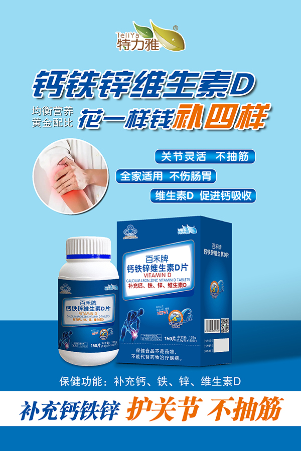 百禾牌钙铁锌维生素D片-150片-蓝