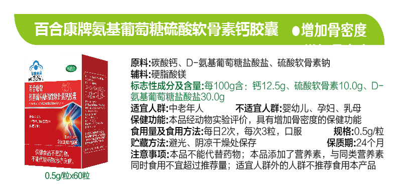 【产品名称】:百合康牌氨基葡萄糖硫酸软骨素