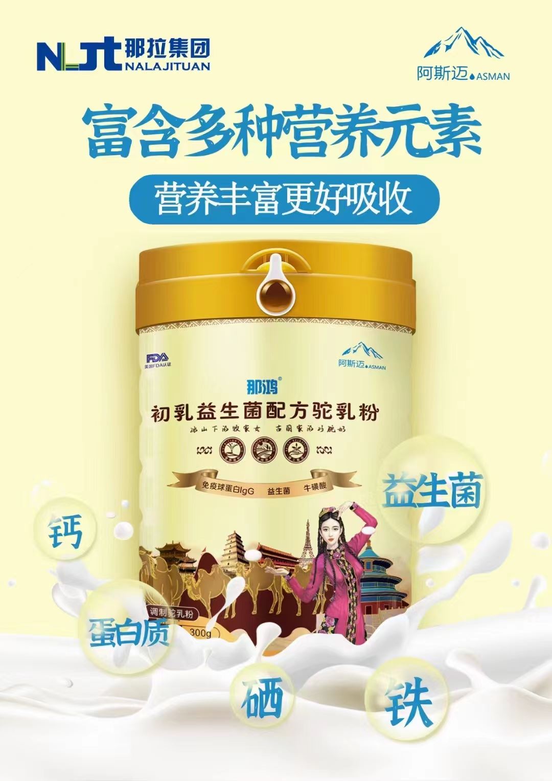 新疆那拉集团阿斯迈乳业有限公司杨健17691107501主做那鸿驼奶羊奶粉、锦驼驼奶粉一直致力于免疫球蛋白配方羊奶粉、全脂绵羊奶粉、免疫球蛋白配方驼乳粉、初乳配方驼乳粉、益生菌配方驼乳粉、全脂驼乳粉的生产,以先进的生产技术和设备,具有完善的质量保证体系。优 质的免疫球蛋白配方羊奶粉、全脂绵羊奶粉、免疫球蛋白配方驼乳粉、初乳配方驼乳粉、益生菌配方驼乳粉、全脂驼乳粉,精 湛的技术,科学管理,满足了客户的需要,成为顾客心中信赖的免疫球蛋白配方羊奶粉、全脂绵羊奶粉、免疫球蛋白配方驼乳粉、初乳配方驼乳粉、益生菌配方驼乳粉、全脂驼乳粉的厂家,新疆阿斯迈乳业有限公司不会辜负消费者对我们的信赖与支持,立志为您提供更低的免疫球蛋白配方羊奶粉、全脂绵羊奶粉、免疫球蛋白配方驼乳粉、初乳配方驼乳粉、益生菌配方驼乳粉、全脂驼乳粉的价格和更贴心的销售业务。新疆阿斯迈乳业有限公司从事专业生产加工多年,拥有完整、科学的质量管理体系。产品质量稳定可靠,供货能力强。秉着质量为先的理念来生产乳制品、保健食品的产品,诚信经营的态度来回应客,让顾客满意是我们的动力。公司在长期的发展过程中免疫球蛋白配方羊奶粉、全脂绵羊奶粉、免疫球蛋白配方驼乳粉、初乳配方驼乳粉、益生菌配方驼乳粉、全脂驼乳粉、产品以过硬的产品质量、良好的产品性能、过硬的技术建立了良好的合作信誉,我们也热诚欢迎潜在的客户来我司考察,参观及技术交流!
