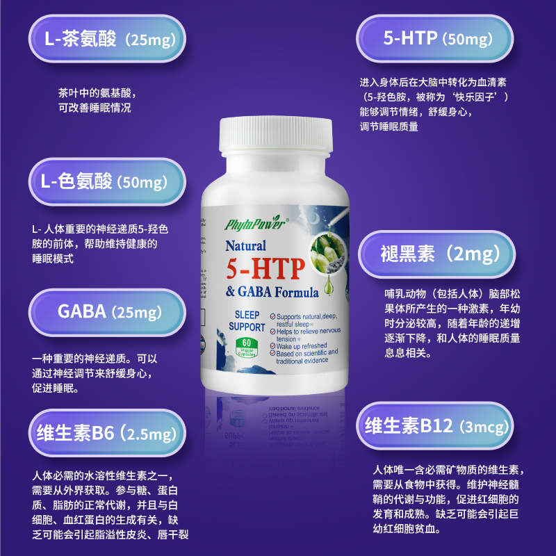 【产品名称】:【美国原装进口】情绪睡眠好物5-HTP&GABA多种有效成分胶囊